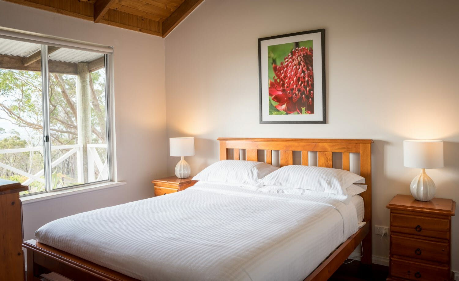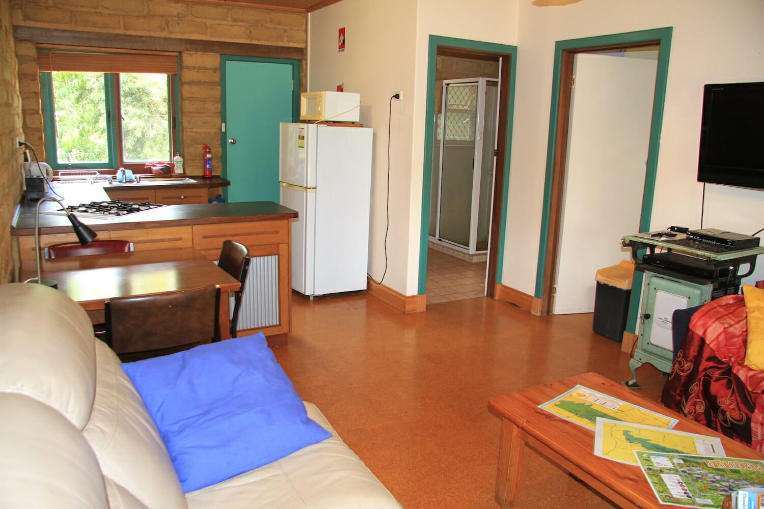 The chalets feature 2 upstairs bedrooms, lounge, dining, fully equipped kitchen and bathroom on the ground floor with amazing bush views from every window.